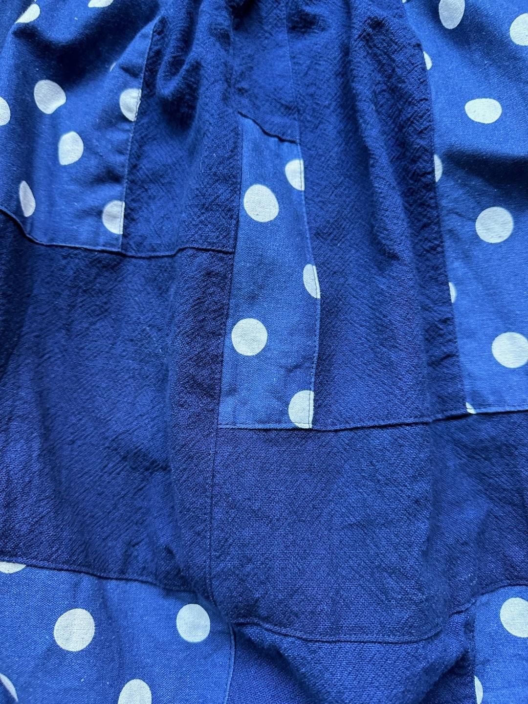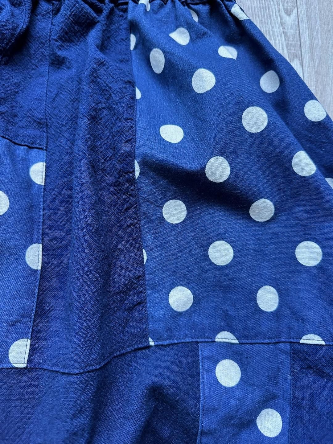 ドットの抜染プリントの生地と凹凸感のあるコットンの生地を