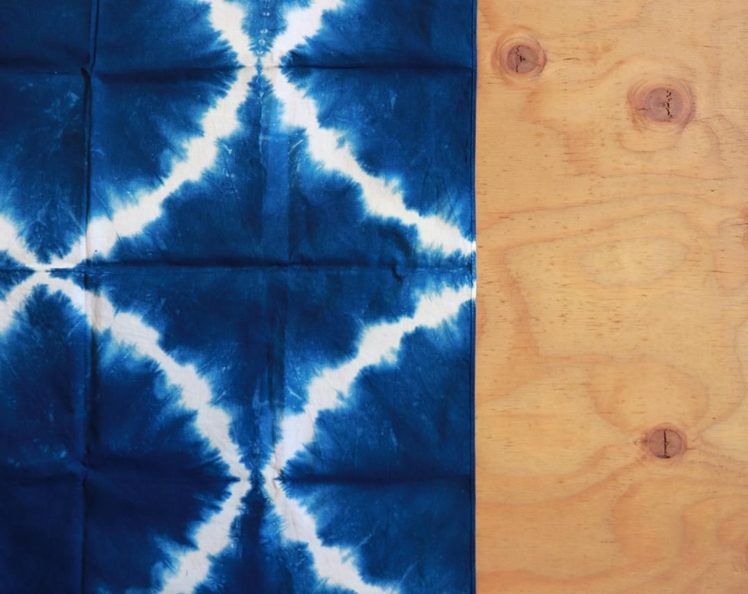 手染めならではの、味わい深い絞り模様が魅力のコットンバンダナです。