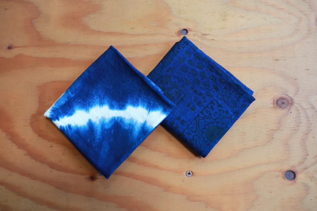 藍染ならではの深みのある青に、繊細な模様が映えるコットンバンダナです。