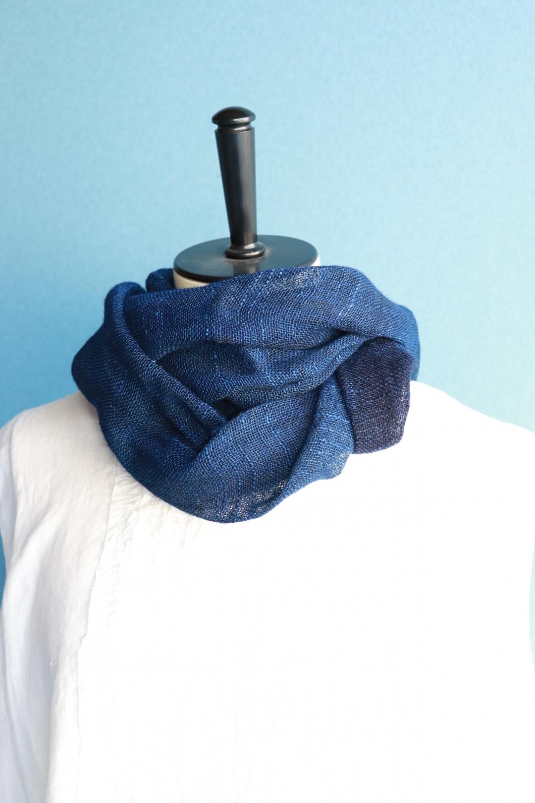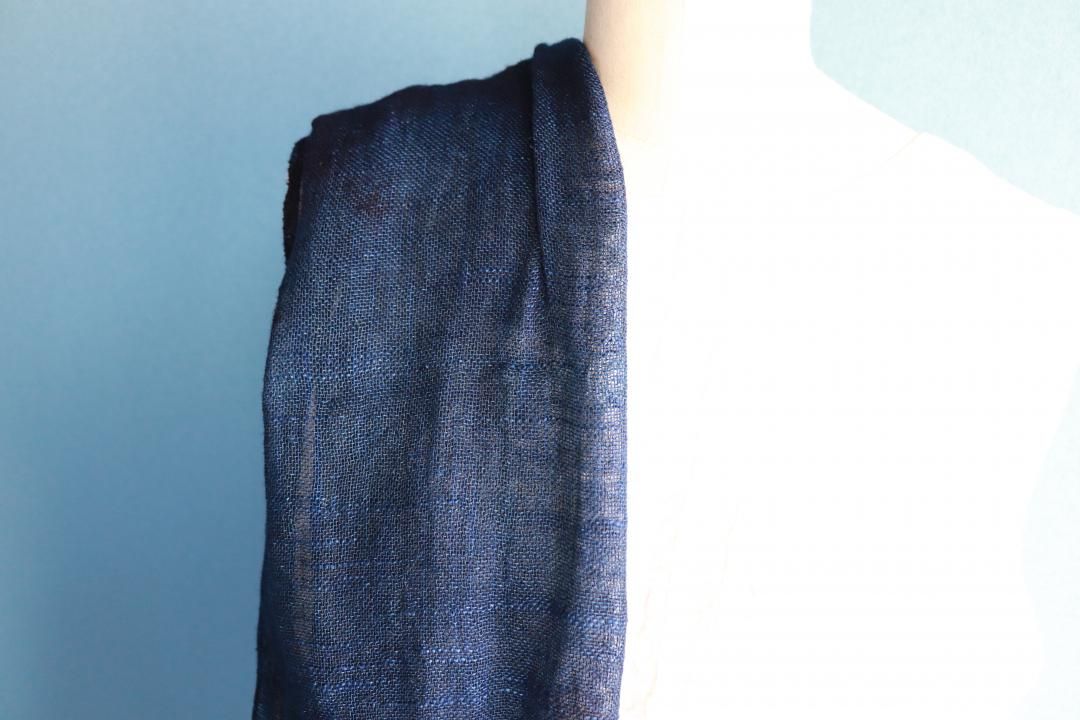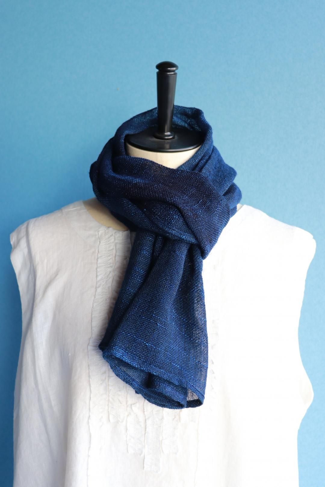 自然な藍の色が魅力の、手染めのロングスカーフです。