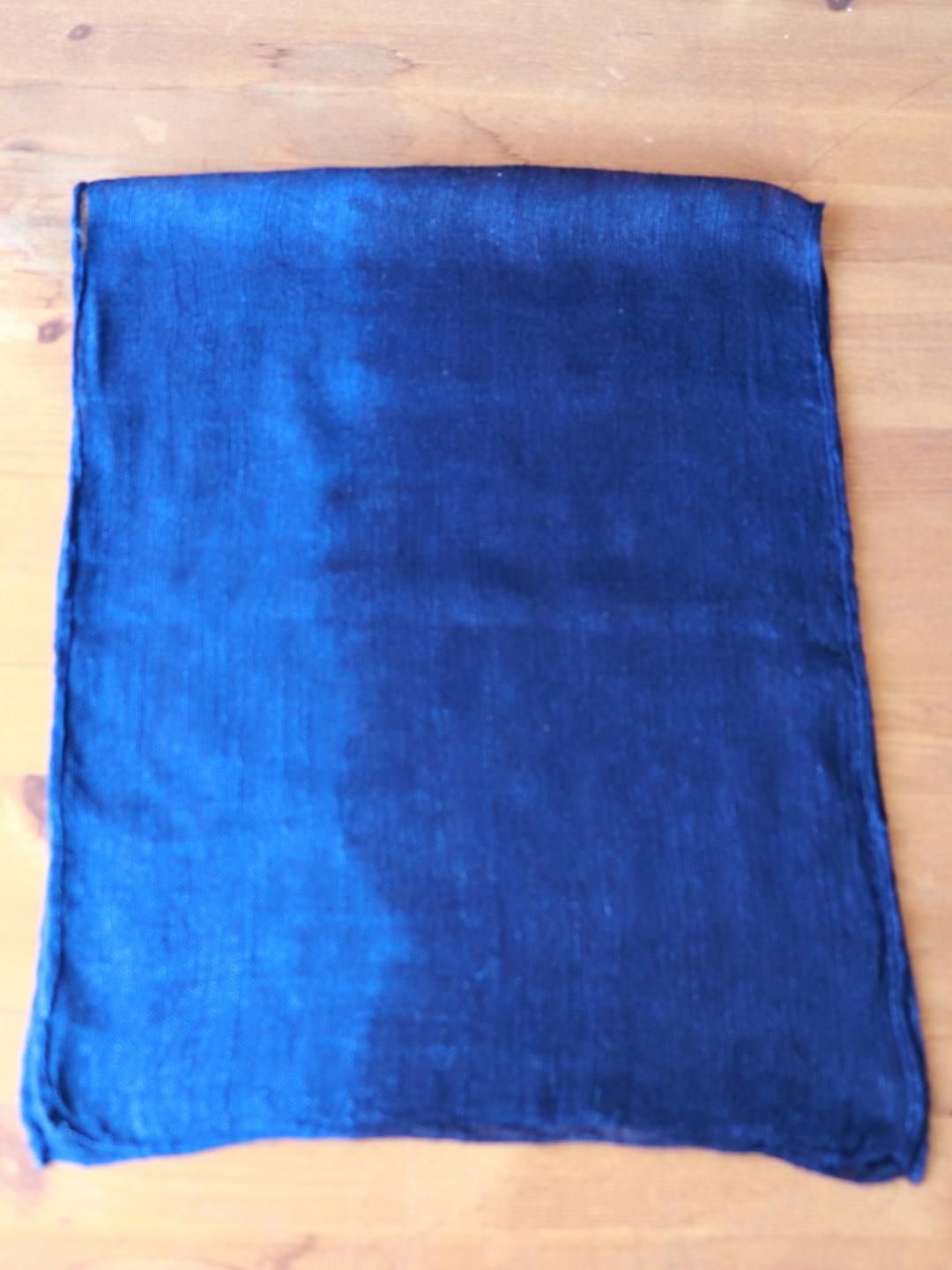 シンプルな無地に見えながら、藍染ならではの自然な濃淡が深みのある印象を与えます。