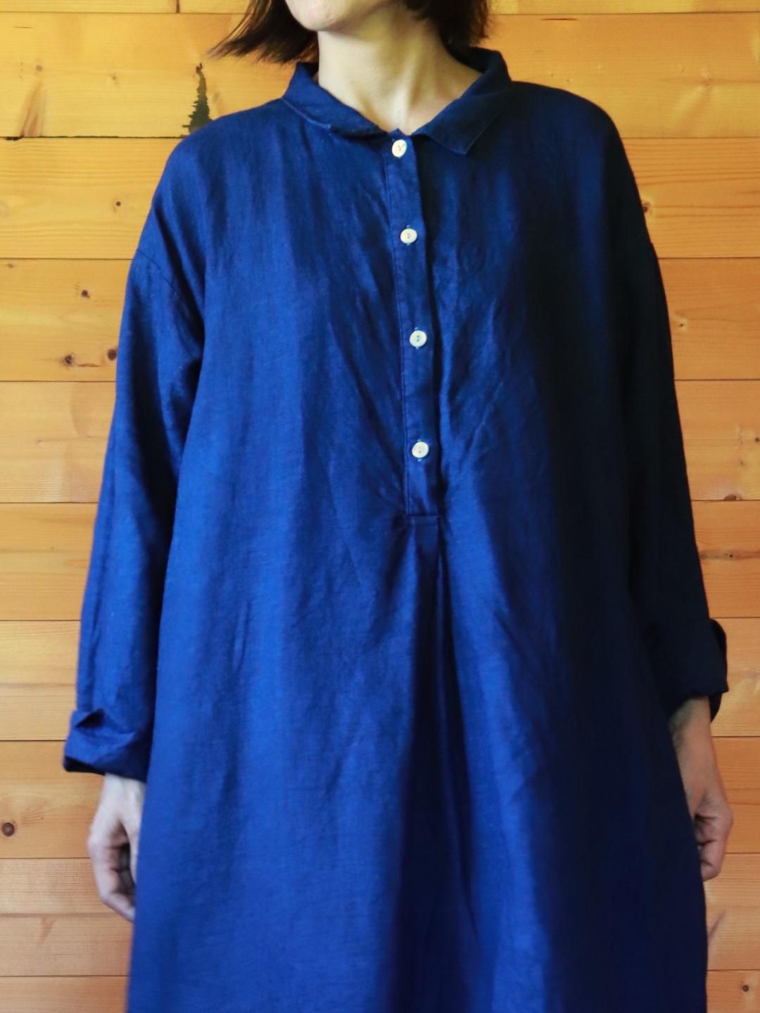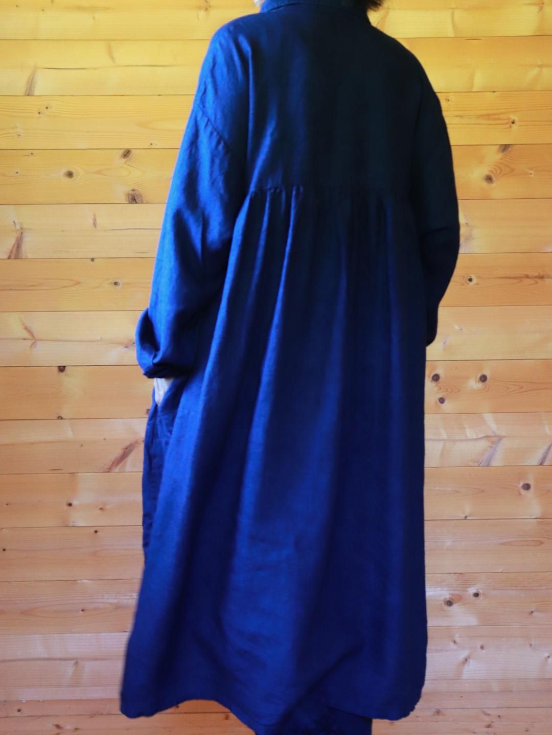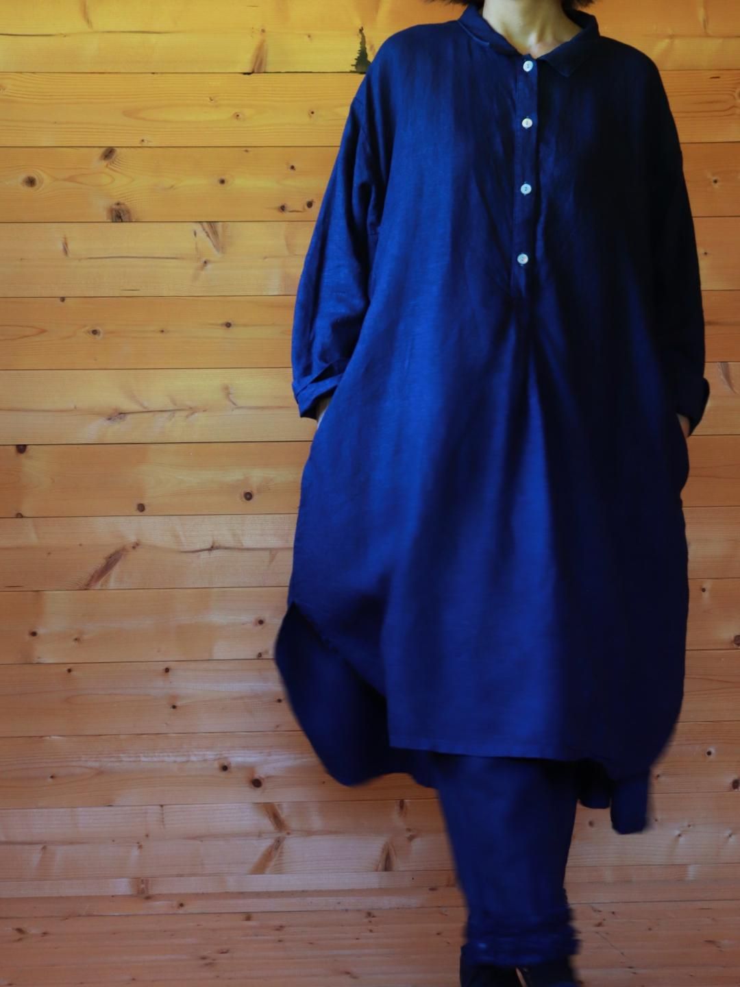 2025年秋冬の新作、インディゴブルーの前タックチュニック。